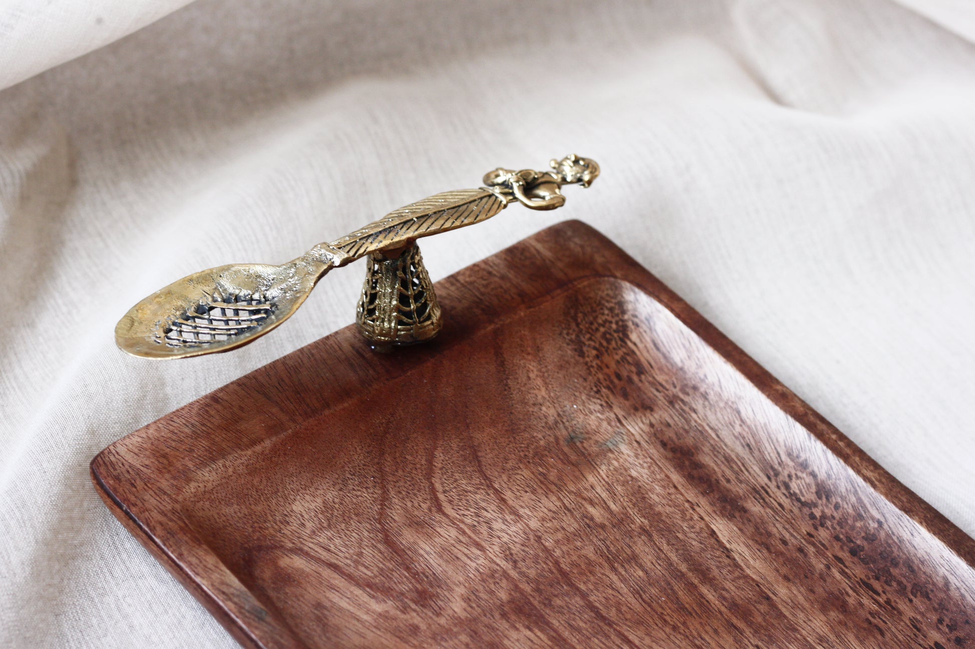 Wooden Serving Tray With Spoon Handles - Handcrafted Mango Wood & Dhokra Brass